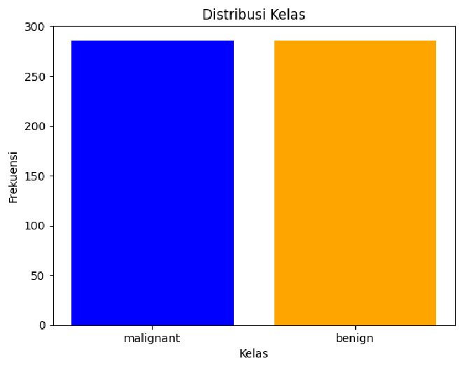 Terlihat bahwa jumlah kelas benign (jinak) lebih banyak daripada kelas malignant (ganas). Hal ini menunjukan contoh ketidakseimbangan data.