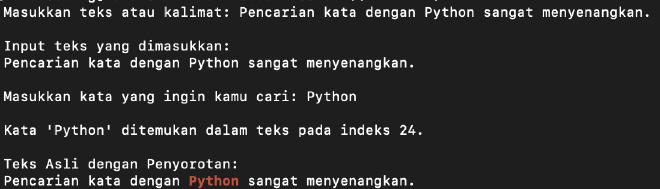 highlighted_text = teks.replace(kata_pencarian, f"\033[1;31m{kata_pencarian}\033[0m")